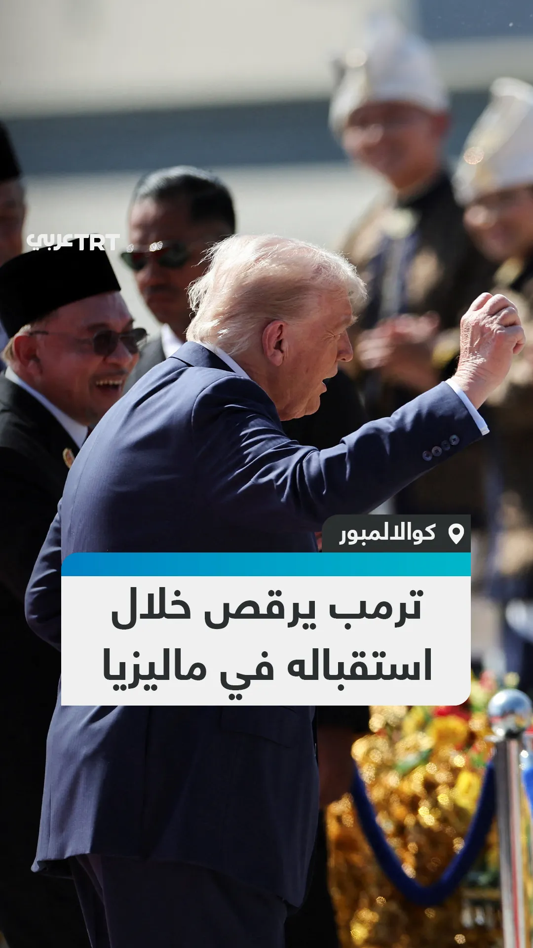 الرئيس الأمريكي دونالد ترمب يتفاعل بالرقص مع فريق الاستقبال لدى وصوله إلى ماليزيا للمشاركة في قمة قادة رابطة دول جنوب شرق آسيا (آسيان).