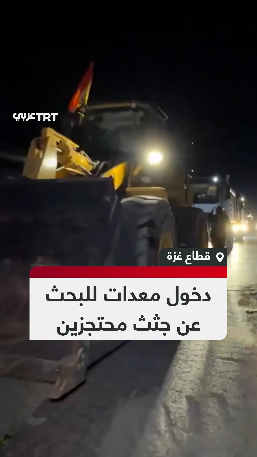لحظة دخول معدات ثقيلة تحمل العلم المصري إلى قطاع غزة للبحث عن جثث المحتجزين الإسرائيليين استكمالاً لبنود اتفاق وقف إطلاق النار.