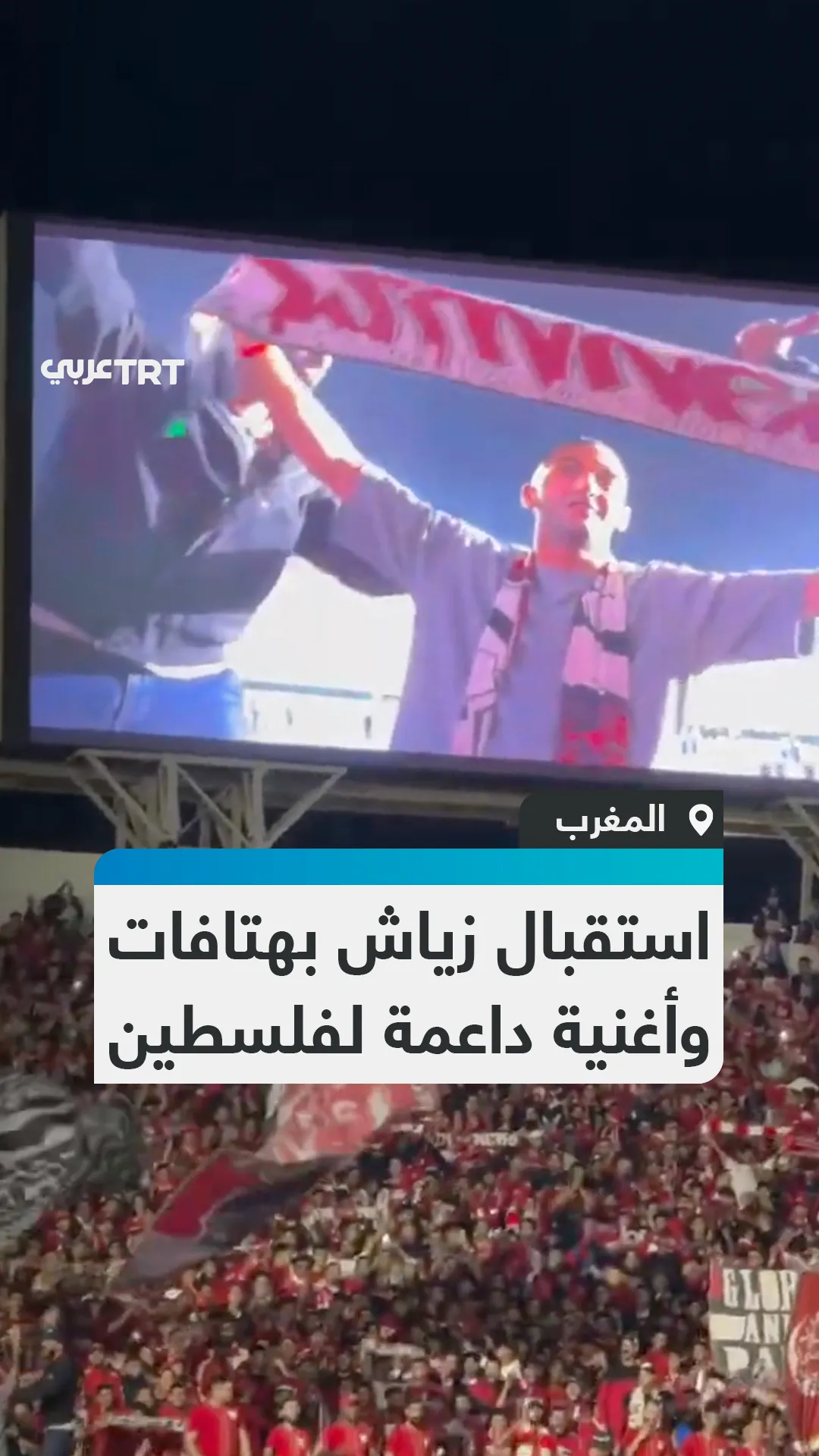 اللاعب المغربي حكيم زياش يهتف لفلسطين وسط جمهور الوداد المغربي خلال حفل استقباله، الذي احتفل بوصوله على إيقاع أغنية "أرض الصمود" الداعمة للشعب الفلسطيني